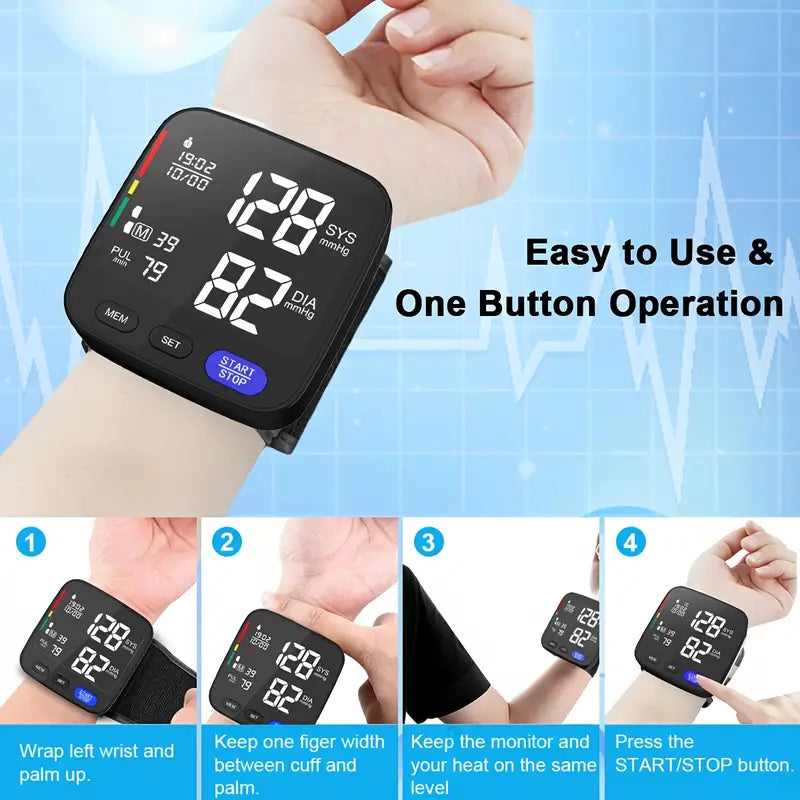 Automatic Digital Wrist Blood Pressure Monitor with Large Display